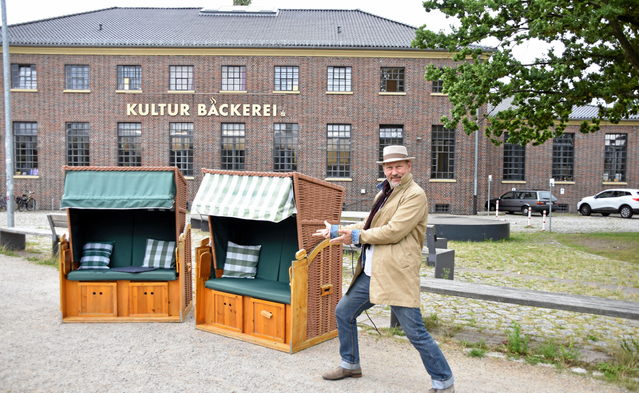 Für genau diese Menschen hat sich LP-Kolumnist und Feierabend-Macher Ben Boles etwas einfallen lassen: „Uns stehen auf der stimmungsvollen Piazza vor der Kulturbäckerei dank der Sparkassenstiftung für unsere ‚Feierabend-Kultur‘-Veranstaltungen zwei gemütliche Strandkörbe zur Verfügung. Das sind die vier besten Plätze, die wir zu bieten haben.“