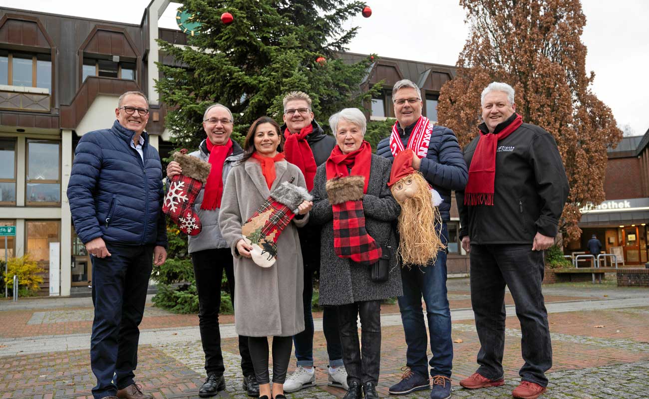Adendorf. Die Aktion „Schmückt den Weihnachtsbaum“ geht ins zweite Jahr. Voriges Jahr wurde sie aus der Corona-Not geboren. „Aber sie kam so gut an, dass wir sie jetzt zu einer neuen Tradition machen wollen“, sagt Christian Hannebohm beim Treff der Werbe- und Wirtschaftsgemeinschaft (WWG) Adendorf auf dem Rathausplatz. Dort steht eine rund zwölf Meter große, prächtige Tanne und wartet darauf, dass die Adendorfer aus ihr einen richtig schönen Weihnachtsbaum machen.