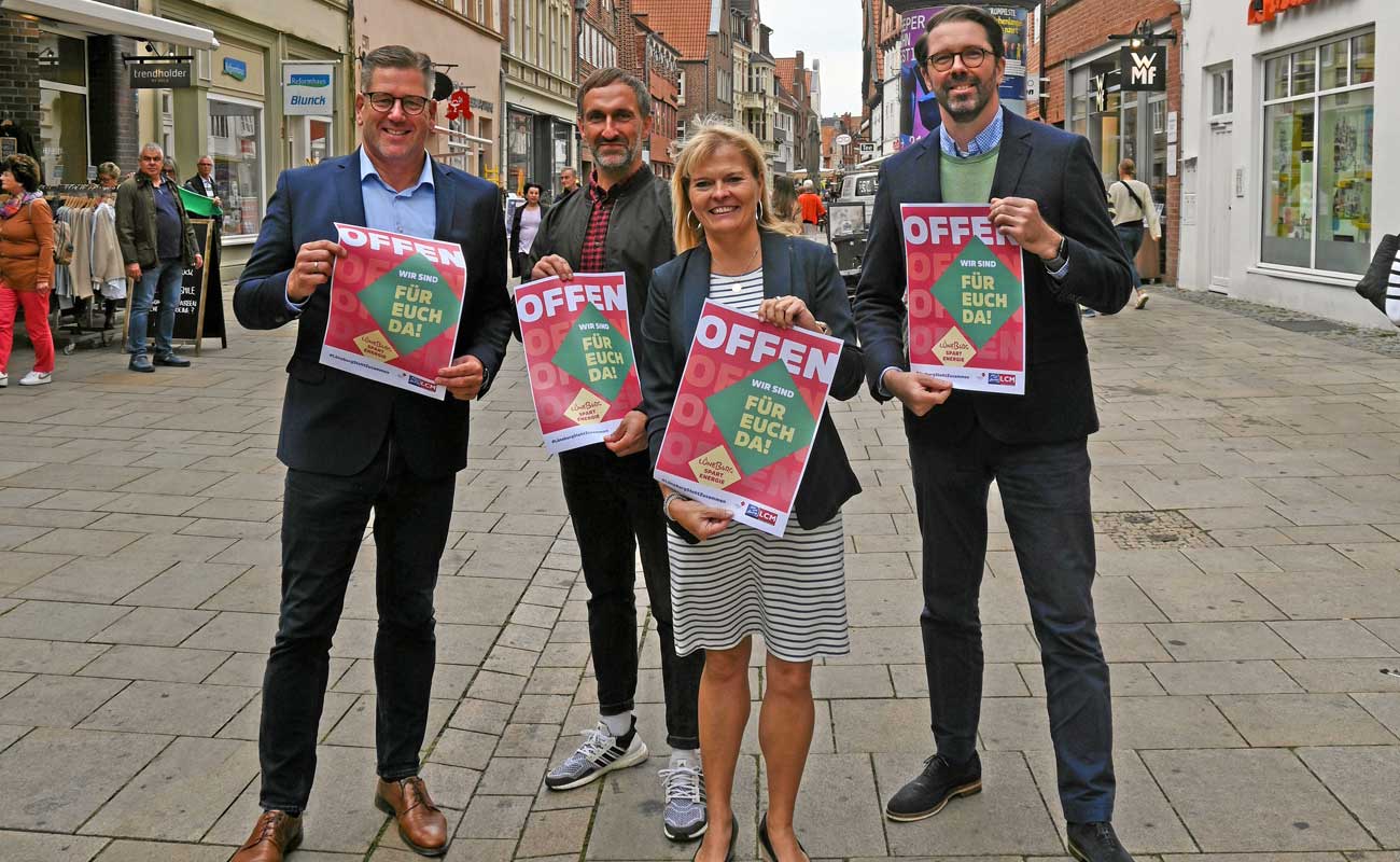 Lüneburg. „Offen. Wir sind für euch da!“ steht auf den neuen Plakaten, mit denen der Lüneburger Handel um Kunden buhlt. Denn weil die Geschäfte laut der neuen Energieeinsparverordnungen die Türen geschlossen halten und die Beleuchung abends ausknipsen sollen, befürchten viele einen Einbruch der Kundenzahlen. „Tür zu kostet 20 Prozent des Umsatzes“, sagt Heiko Meyer, Vorsitzender des Lüneburger Citymanagements LCM.
